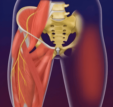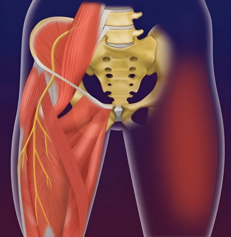 Menos frequentemente, o nervo pode ser comprimido na região glútea, pelo músculo piriforme, que fica logo abaixo do glúteo máximo. Chama-se essa doença de Síndrome do Piriforme. Na situação, o paciente apresenta dor na nádega, acompanhada ou não de dor na coxa.