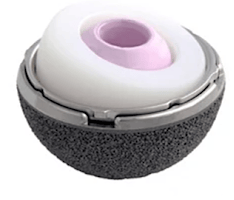 Imagens dos liners dupla-mobilidade e constrito, usados em pacientes com alto risco de luxação ou em pacientes com luxações recorrentes na prótese.