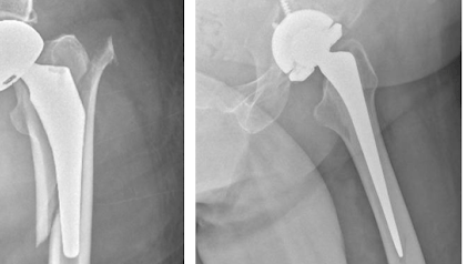 Radiografias mostrando solturas da prótese de quadril.